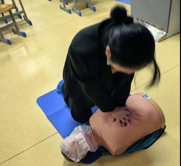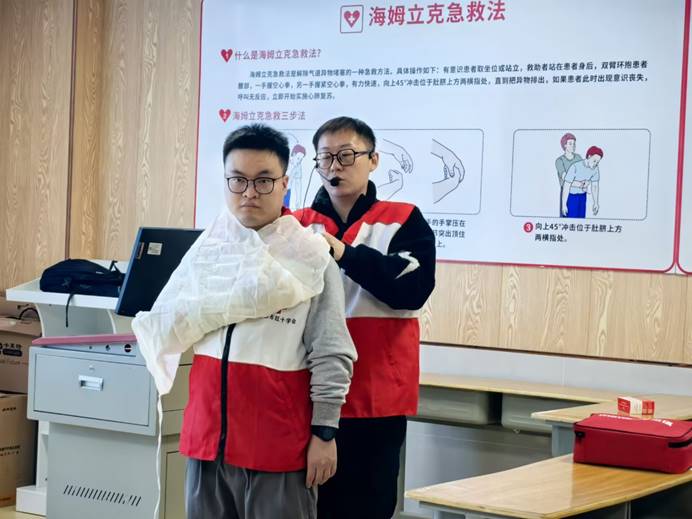 本次培训采用了小班化、精细化的教学模式,紧密结合校园工作场景的实际需求,由我校医学基础部的专业红十字师资团队授课。课程严格遵循“理论讲解与实操训练并重”的原则,内容紧密围绕学生群体中可能遇到的突发状况,重点讲解了心肺复苏(CPR)、自动体外除颤仪(AED)的使用、常见创伤的止血与包扎以及异物梗阻急救法等常见急症的现场初步处理。